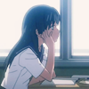 Description: Saten (from Railgun) in class, elbows on desk, looking bored/tired/distracted